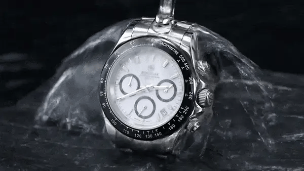 Résistant à l'eau jusqu'à 100 m (330 ft), en général, convient pour les activités maritimes professionnelles et les sports nautiques de surface sérieux, mais pas pour la plongée sous-marine, la couronne devrait être enfoncée puis vissée pour protéger la montre des dommages causés par l'eau