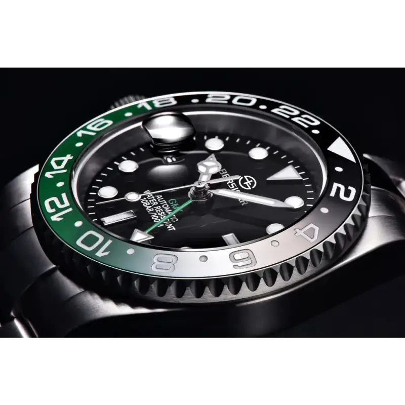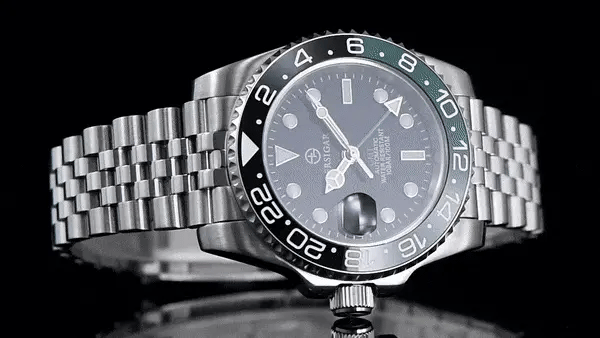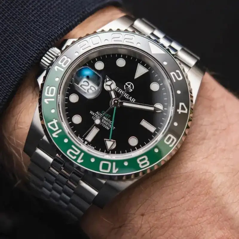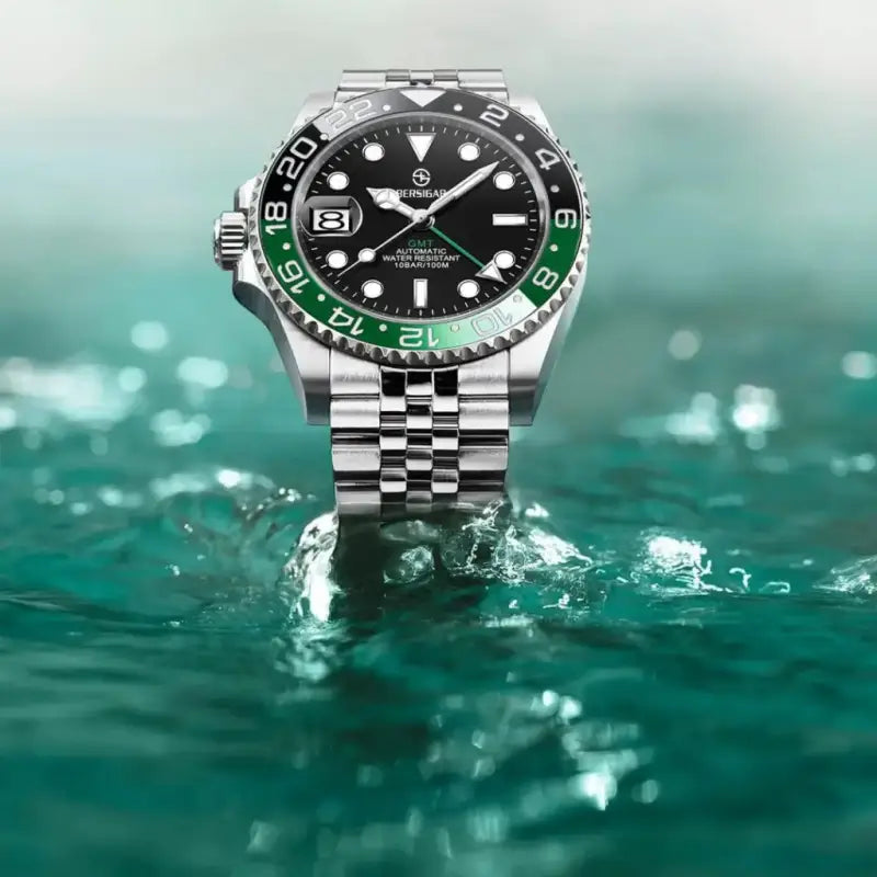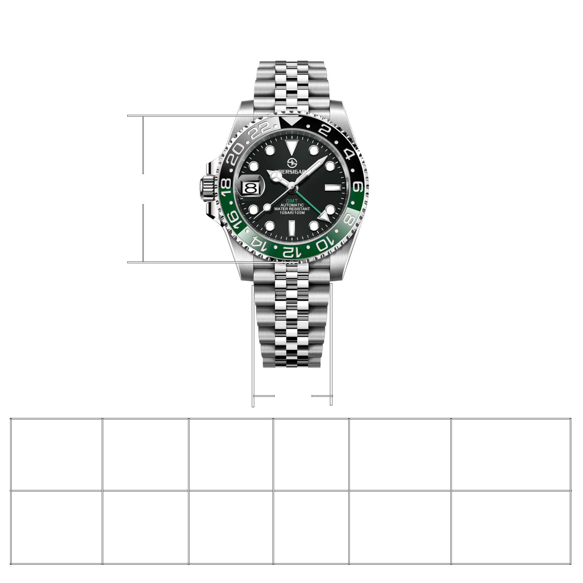 Matériaux de qualité supérieure et design décontracté, verre de cadran en saphir, construction entièrement en acier inoxydable 316L avec couronne vissée, lunette céramique pouvant être tournée dans le sens inverse des aiguilles d'une montre et fond de boîtier transparent, bracelet Jubilee solide et flexible avec un fermoir classique à rabat