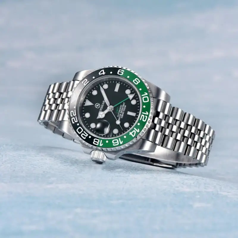 Mouvement automatique Pearl DG5833 GMT de haute qualité, offrant une grande précision de l'heure, un remontage automatique et une réserve de marche de plus de 36 heures.
