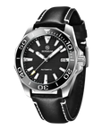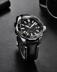 Matériaux premium et design décontractéSaphir fenêtre de cadran, construction entièrement en acier inoxydable avecvis à vissage couronne, la cadran en céramique peut être tourné dans le sens inverse des aiguilles d'une montre et fond transparent, bracelet solide et flexible avec un fermoir classique à rabat ou bracelet en cuir véritable avec boucle