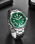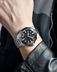 Matériaux premium et design décontractéSaphir fenêtre de cadran, construction entièrement en acier inoxydable avecvis à vissage couronne, la cadran en céramique peut être tourné dans le sens inverse des aiguilles d'une montre et fond transparent, bracelet solide et flexible avec un fermoir classique à rabat ou bracelet en cuir véritable avec boucle