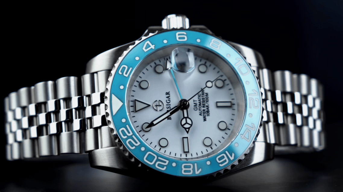 Premium materials and casual design, Sapphire dial window, full 316L stainless steel construction with screw-down crown, the ceramic bezel can be rotated counterclockwise and transparent case back, solid and flexible Jubilee bracelet with a classic fold-over clasp.