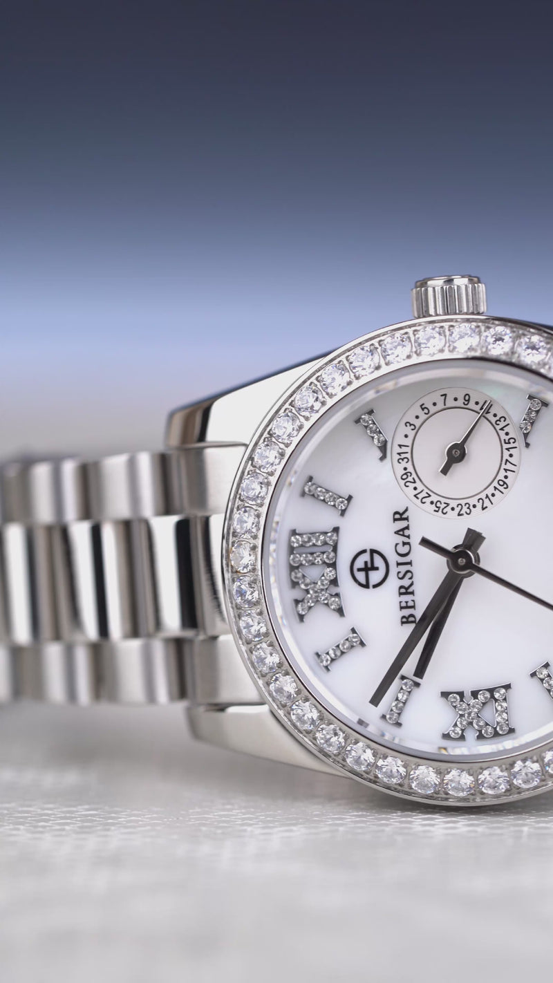 Introducing Bersigar Luxuara 1776 voor vrouwen, de ultieme horloge voor de moderne vrouw. Deze horloge heeft een prachtige lichtblauwe kleur en een luxueus ontwerp, waardoor het de perfecte accessoire is voor elke outfit. Met een precieze en betrouwbare mechanisme is deze horloge zowel functioneel als stijlvol, zodat je op schema blijft en er goed uitziet. Verrijk je garderobe met Bersigar Luxuara 1776 voor vrouwen.