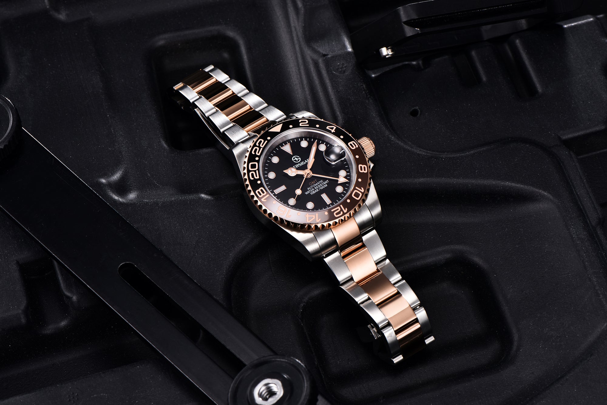 Top-quality SEIKO NH34A GMT automatic movement, very accurate timekeeping, self-winding and the power of the spring can reserve more than 36 hours.