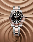 Premium materials and casual design, Sapphire dial window, full 316L stainless steel construction with screw-down crown, the ceramic bezel can be rotated counterclockwise and transparent case back, solid and flexible Jubilee bracelet with a classic fold-over clasp.