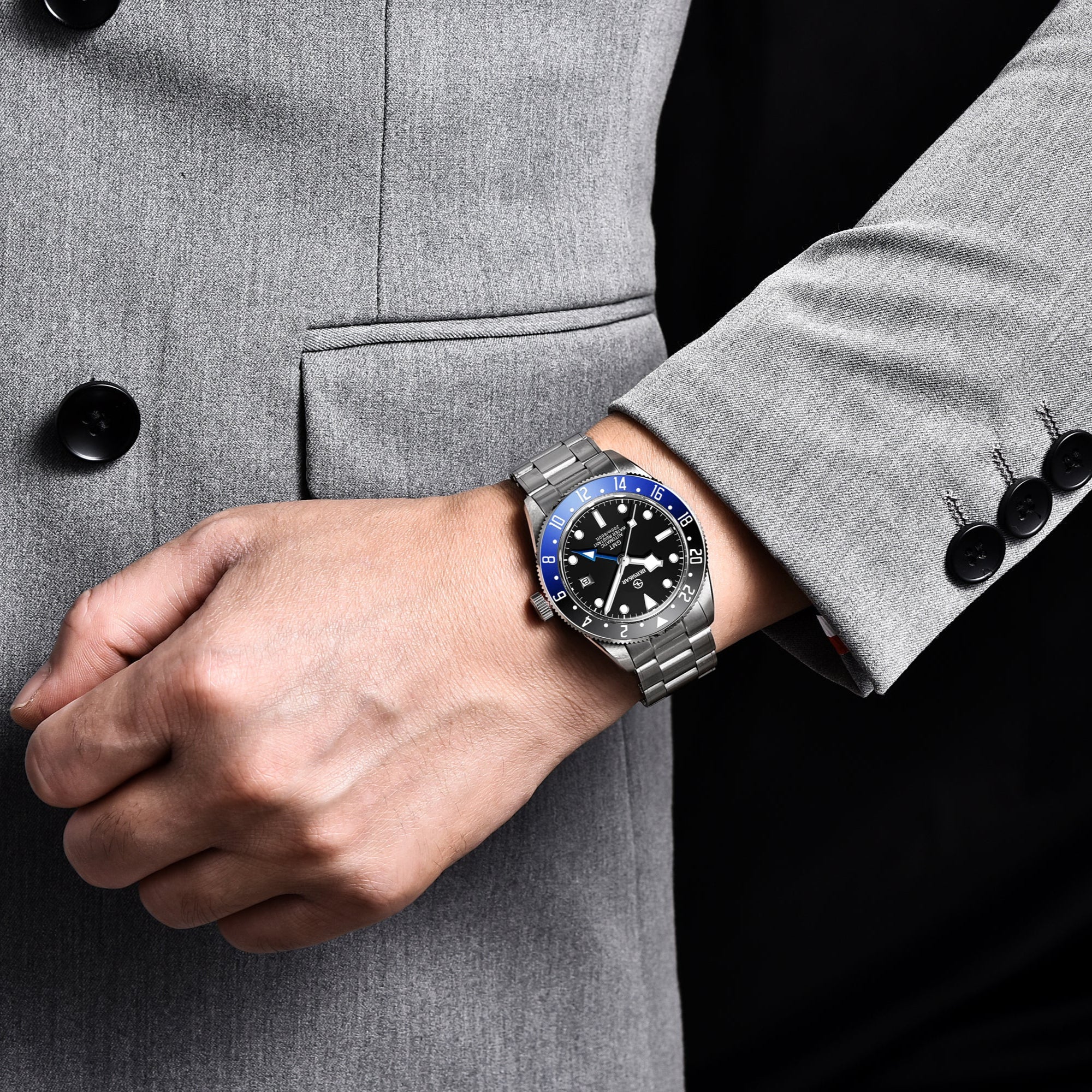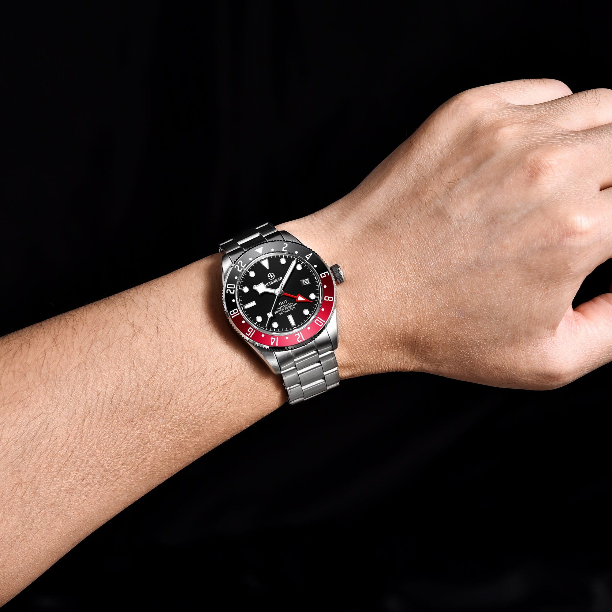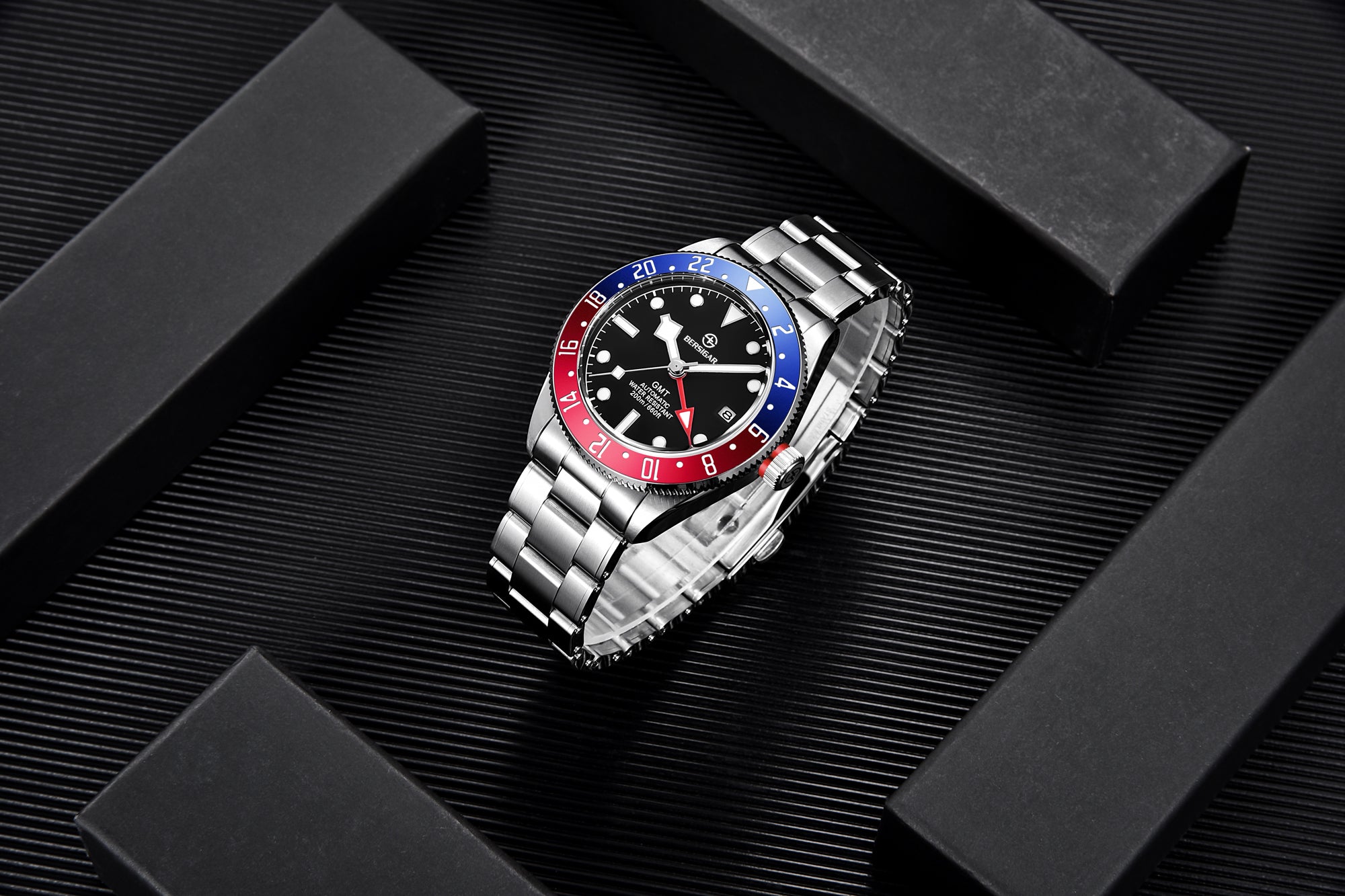 Top-quality Pearl DG5833 GMT automatic movement, very accurate timekeeping, self-winding and the power of the spring can reserve more than 36 hours.