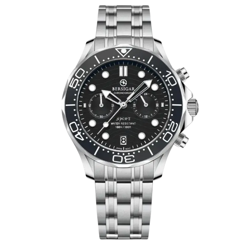 Quality Japanese Seiko VD53 quartz chronograph movement, very accurate timekeeping, Its architecture, manufacturing and innovative features make it exceptionally precise and reliable.