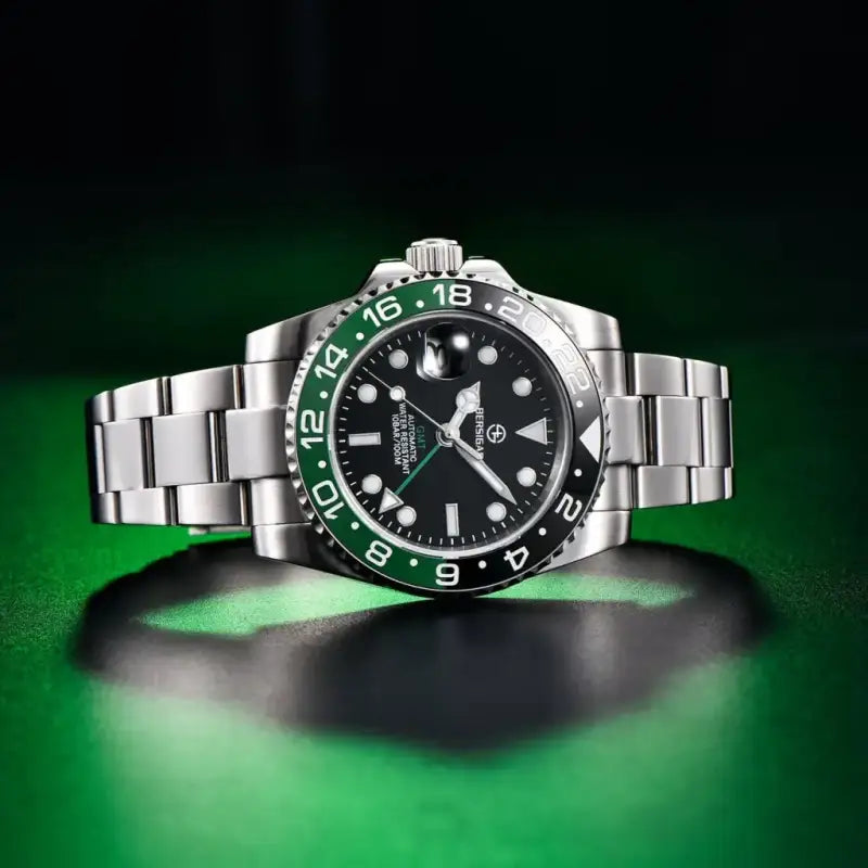Top-quality Pearl DG5833 GMT automatic movement, very accurate timekeeping, self-winding and the power of the spring can reserve more than 36 hours.