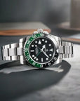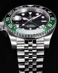 Premium materials and casual design, Sapphire dial window, full 316L stainless steel construction with screw-down crown, the ceramic bezel can be rotated counterclockwise and transparent case back, solid and flexible Jubilee bracelet with a classic fold-over clasp.
